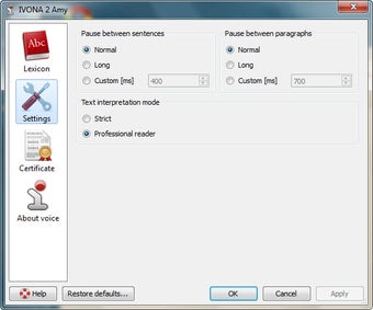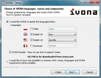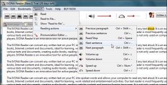 Het hoofddoel van het programma is echter het voorlezen van door jou ingevoerde tekst. Hiervoor gebruik je de Play-knop en met de andere knoppen 'spoel je door' naar de volgende zin of paragraaf. IVONA Reader ondersteunt Pools en Engels; voor beide talen zijn verscheidene stemmen beschikbaar. De kunstmatige intelligentie werkt uitstekend en de stemmen klinken verrassend realistisch. Het is dan ook erg jammer dat IVONA Reader geen Nederlands spreekt.