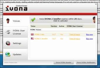 IVONA Reader spreekt tekst op het scherm hardop voor je uit. Zo gebruik je de 'text to speech' applicatie om ebooks, websites of emails voor te lezen. IVONA Reader integreert met programma's als Skype, Outlook & Internet Explorer. Je neemt de audio zelfs op om deze met je iPod af te spelen.